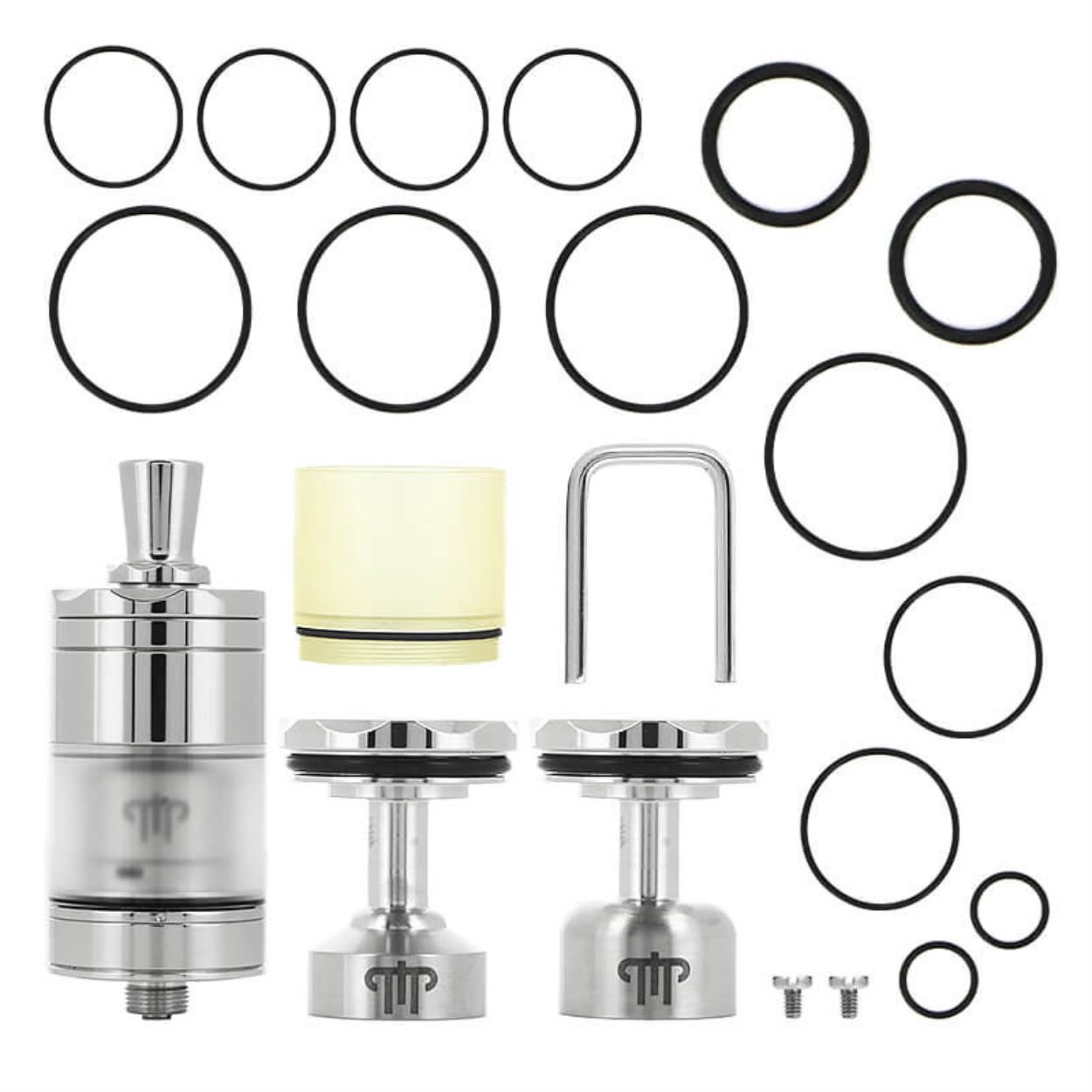 Diplomat, un RTA MTL puro, de primera calidad fabricado en acero inoxidable 304L y diseñado con una nueva tecnología de flujo de aire, creando nubes sabrosas e intensas sin turbulencias. Su compacidad y simplicidad permiten una fácil limpieza y reconstrucción. Viene con tres campanas diferentes que alteran el sabor. También está equipado con un anillo de flujo de aire ajustable (0,8 a 1,8 mm).