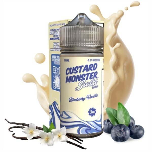 Descubra Blueberry Vanilla Swirl Edition de Custard Monster, cautivando las papilas gustativas con el tentador sabor de los arándanos combinados con vainilla.