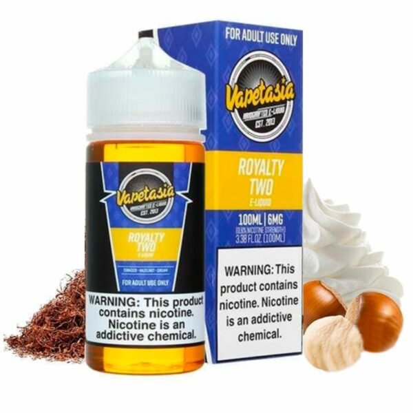 Toques de natillas ricas, avellanas dulces y vainilla cremosa forjadas audazmente con un suave sabor a tabaco. Nuestro E-Liquid Royalty Two Gourmet tiene un sabor excepcional y está favorecido por encima de todos los demás en nuestra línea. Con cada inhalación digna, encontrará notas complejas y únicas de natillas, avellanas y vainilla fusionadas con un suave sabor a tabaco que seguramente complacerá a los paladares más exigentes. Al exhalar, encontrarás los más espléndidos sabores cremosos.